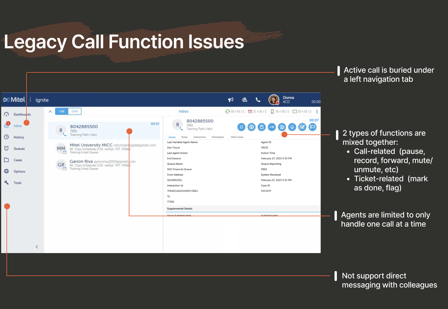 One common use case for contact center agents is managing a high volume of daily incoming calls. However, the previous workflow presented several significant usability issues: