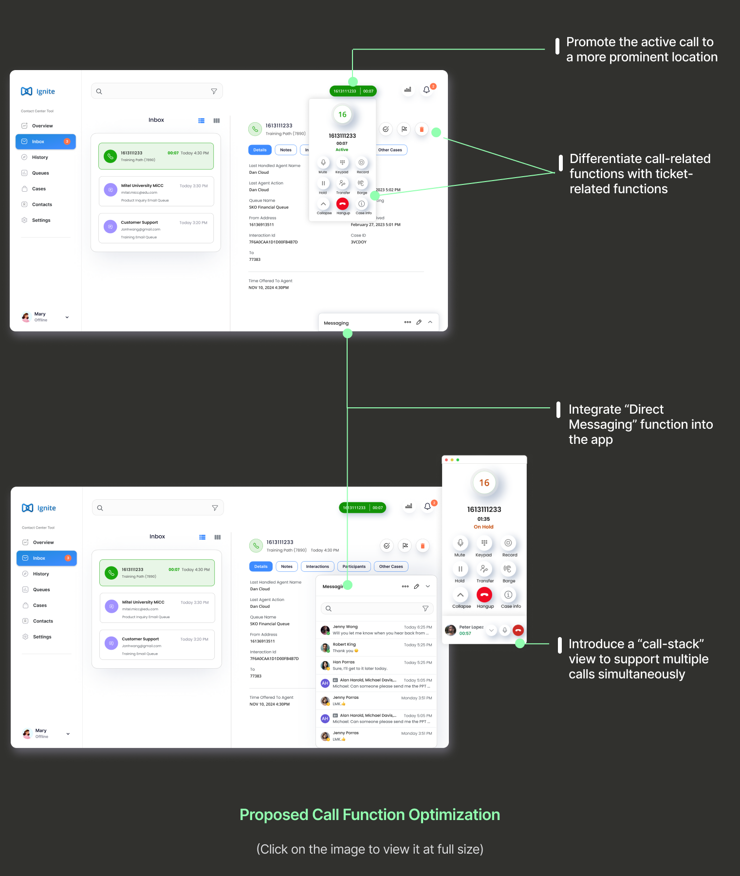 To address these four usability issues, I reimagined and enhanced the call handling functionalities as follows:
